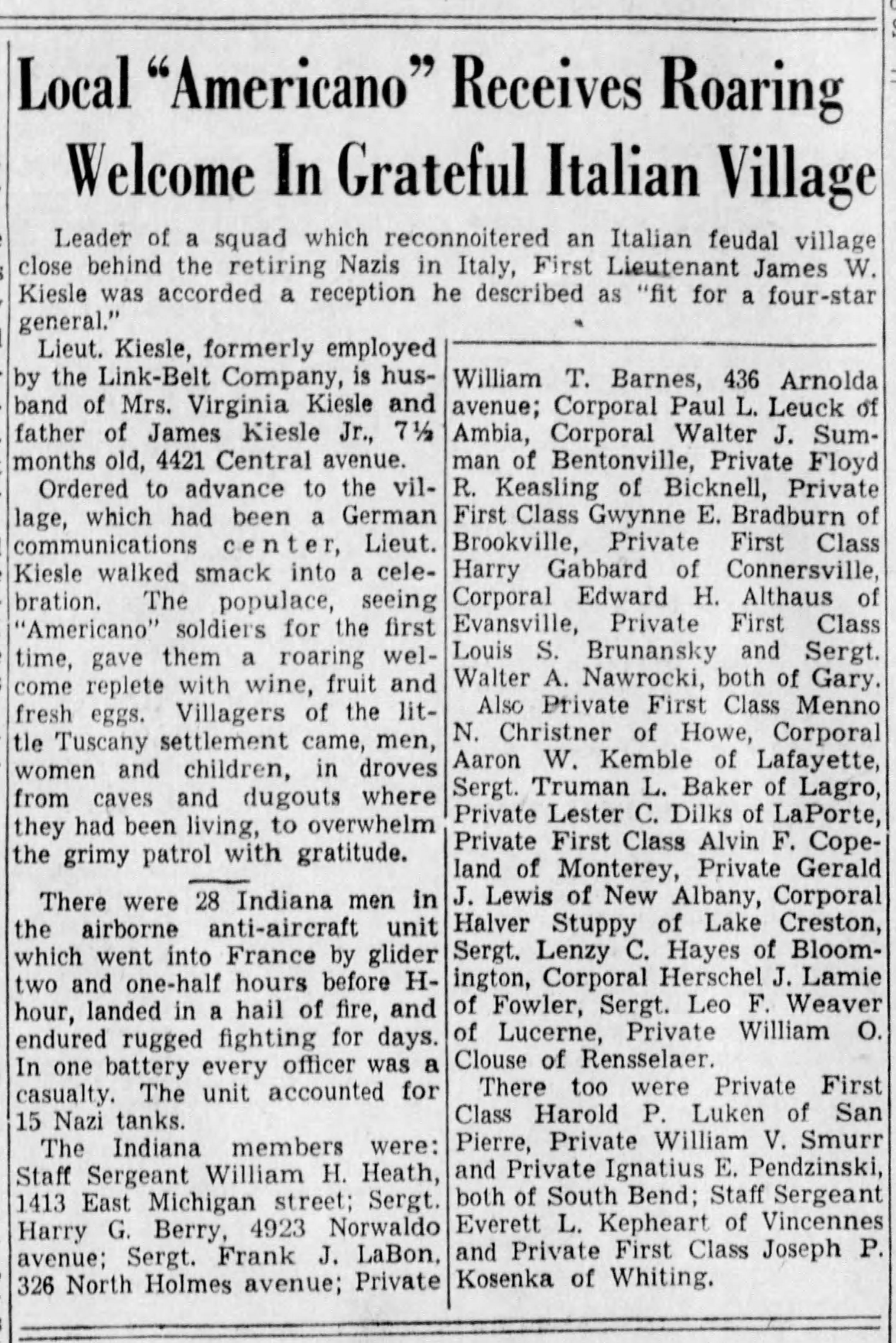Indianapolis Star, August 29,1944. See fourth paragraph down, first column.